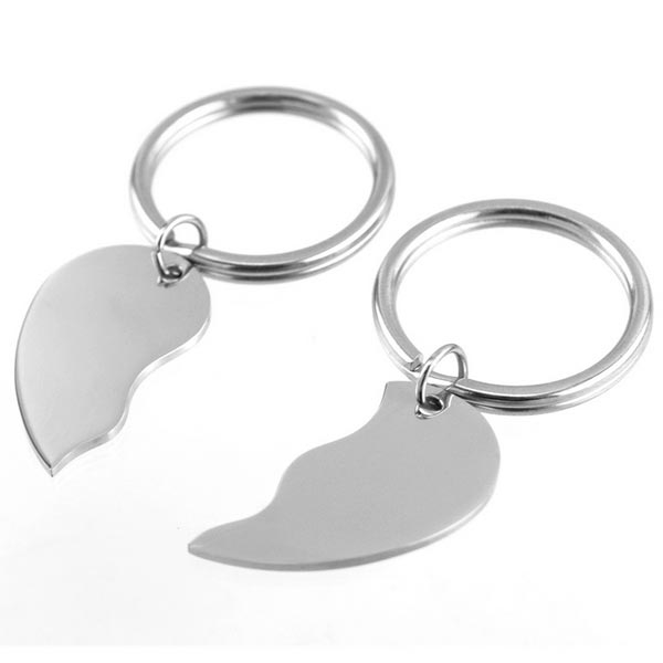 2 ks ocelových přívěšeků na klíče - dělené srdce