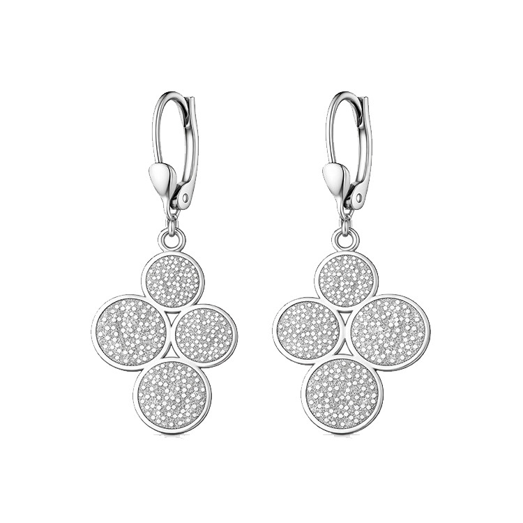 Elegantní stříbrné náušnice tvořené čtyřmi propojenými kruhy vytvářejí harmonický a moderní design s jemným třpytivým efektem. Strukturovaný povrch jednotlivých ploch krásně odráží světlo a dodává šperku luxusní, ale zároveň decentní vzhled.