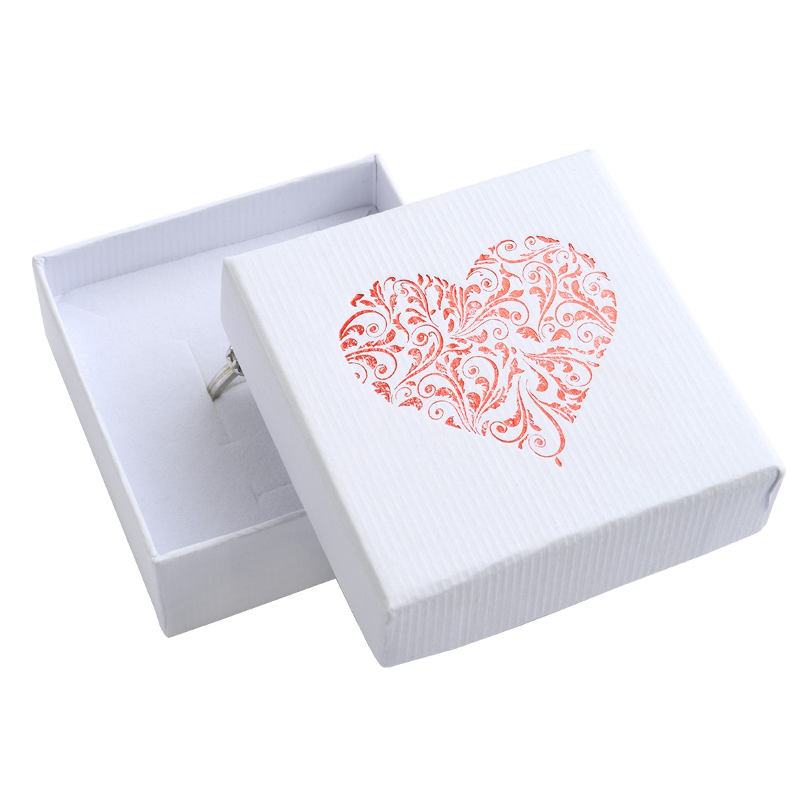 Bílá dárková krabička na soupravu šperků s ornamentálním srdcem