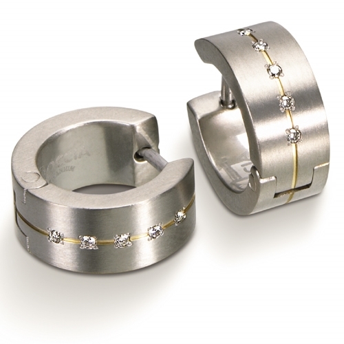 Titanové náušnice kroužky s diamanty BOCCIA®