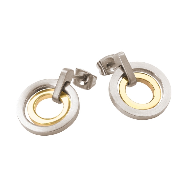 Titanové náušnice mají kombinovanou matnou a zlacenou povrchovou úpravou