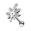 Cartilage piercing do ucha zdobený symbolem listu marihuany