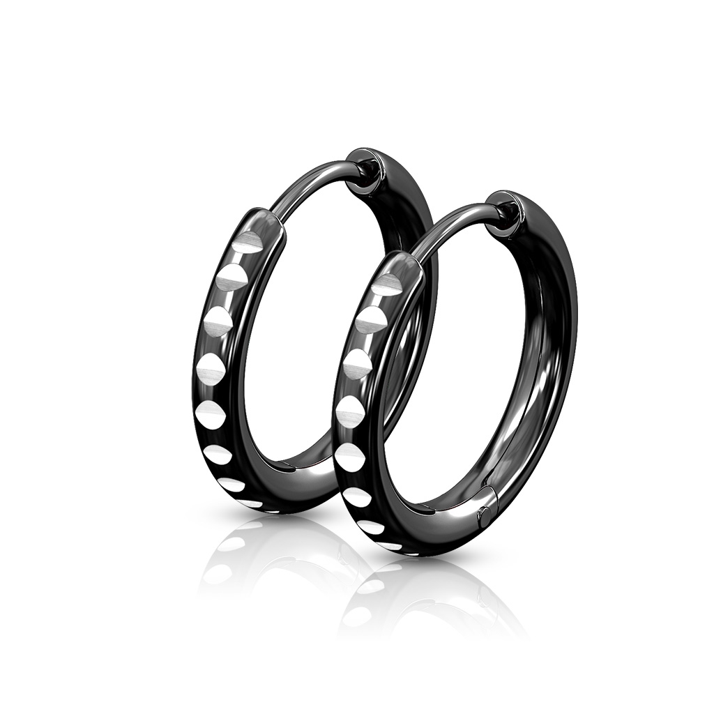 Černé ocelové náušnice kroužky s ozdobnými zářezy