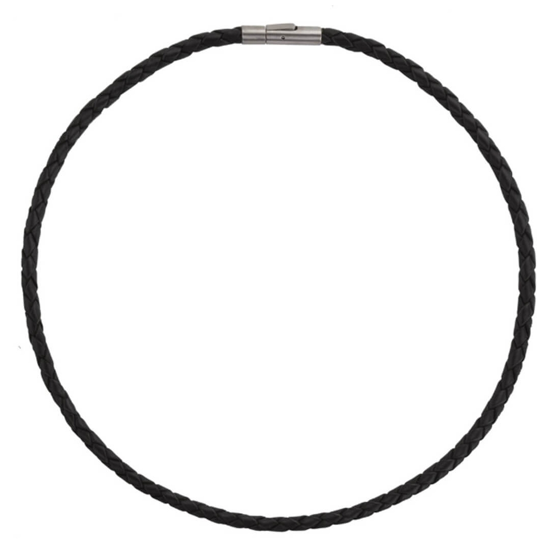 Černý kožený splétaný náhrdelník s titanovým úzávěrem, délka 42 cm