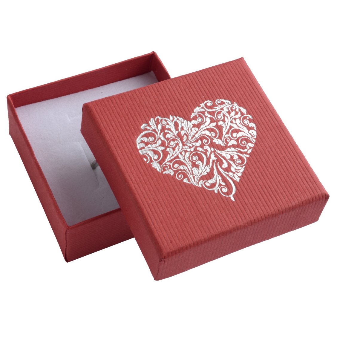 Červená dárková krabička na soupravu šperků s ornamentálním srdcem