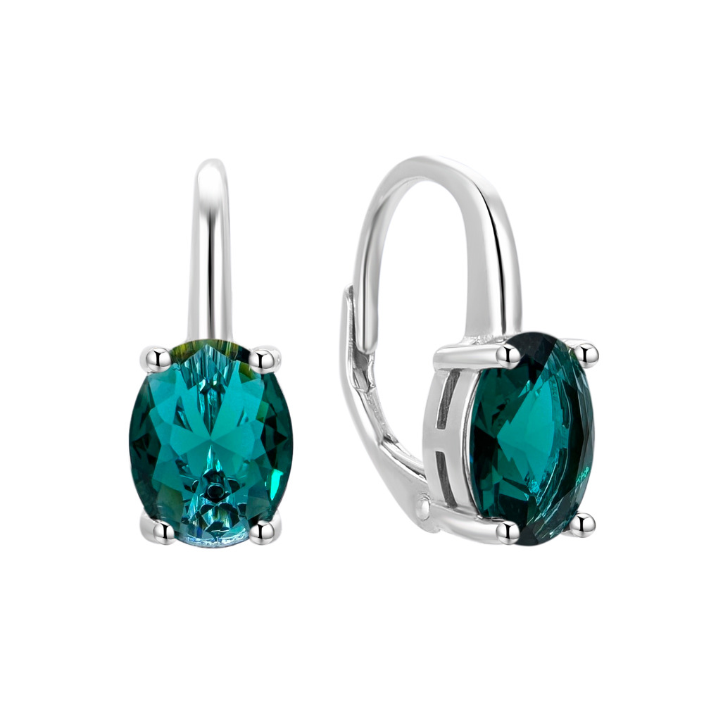 Dámské stříbrné náušnice s oválnými zelenými zirkony