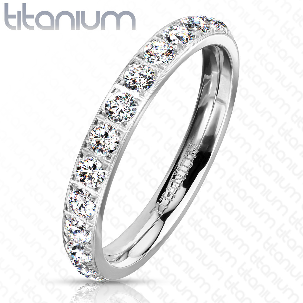 Dámský prsten z titanu dekorovaný kubickými zirkony čiré barvy