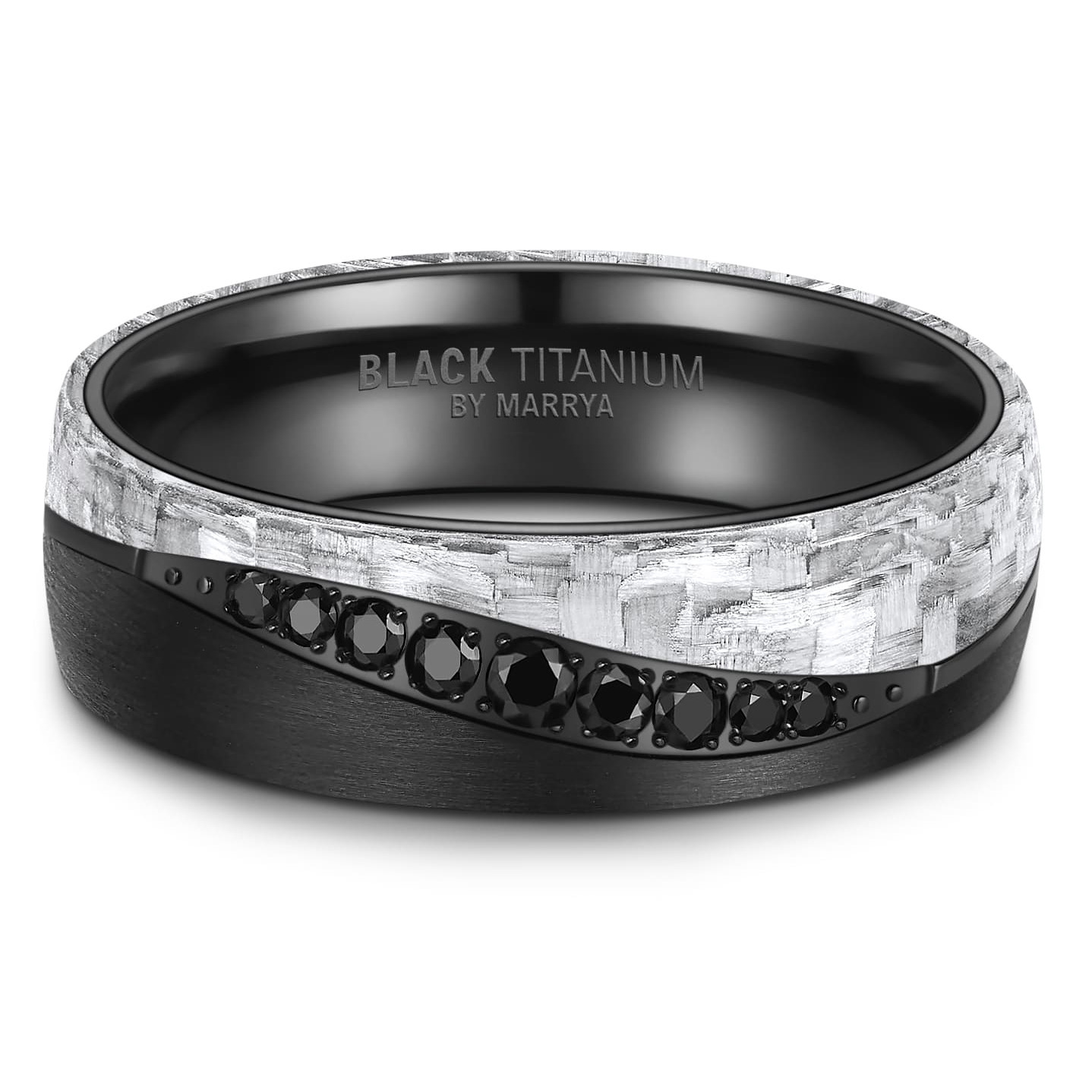 Snubní prsten má kombinovaný vzhled z materiálu Black Titanium + karbon černé a šedé barvy. Černá barva vzniká zahříváním, nikoliv nanášením povlaku, černý povrch je tak mnohonásobně kvalitnější a odolnější než povrchové úpravy nanášené PVD způsobem. BLACK TITANIUM je slitina skládající se ze směsi 51% zirkonium a 49% titanium. Směs těchto kovů je tedy velmi lehká a vysoce odolná vůči opotřebení.