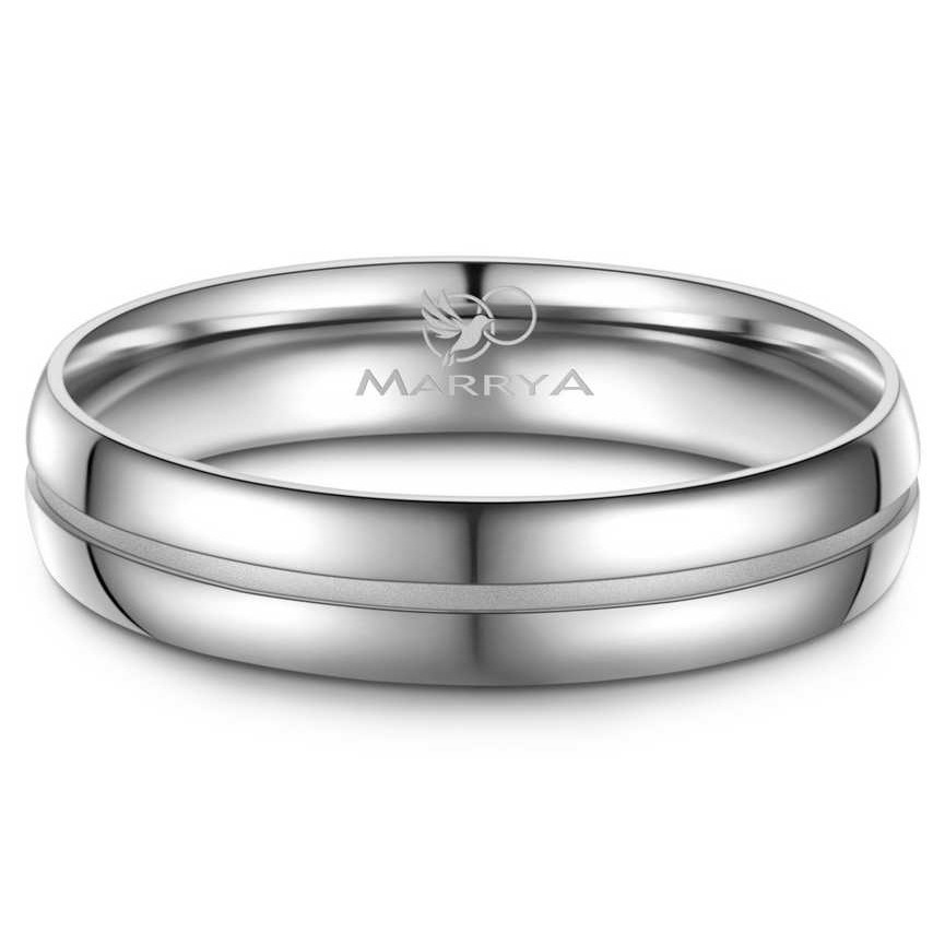 Prsten má lesklou povrchovou úpravu a ozdobnou drážku. Prsten má lehce zaoblený profil a pro pohodlné nošení je prsten uvnitř bombírovaný.