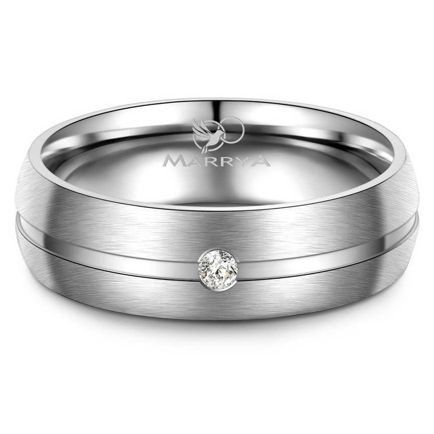 Dámský prsten má matný povrch a je dekorovám decentní lesklou středovou drážkou, do které je vsazen zirkon čiré barvy. Příplatkově lze dámský prsten osadit také diamantem.