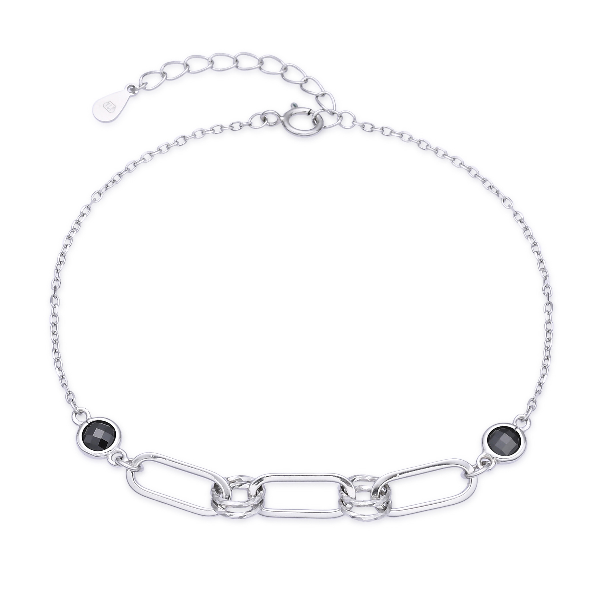 Dámský stříbrný náramek zdobený motivem oválků a kameny černé barvy