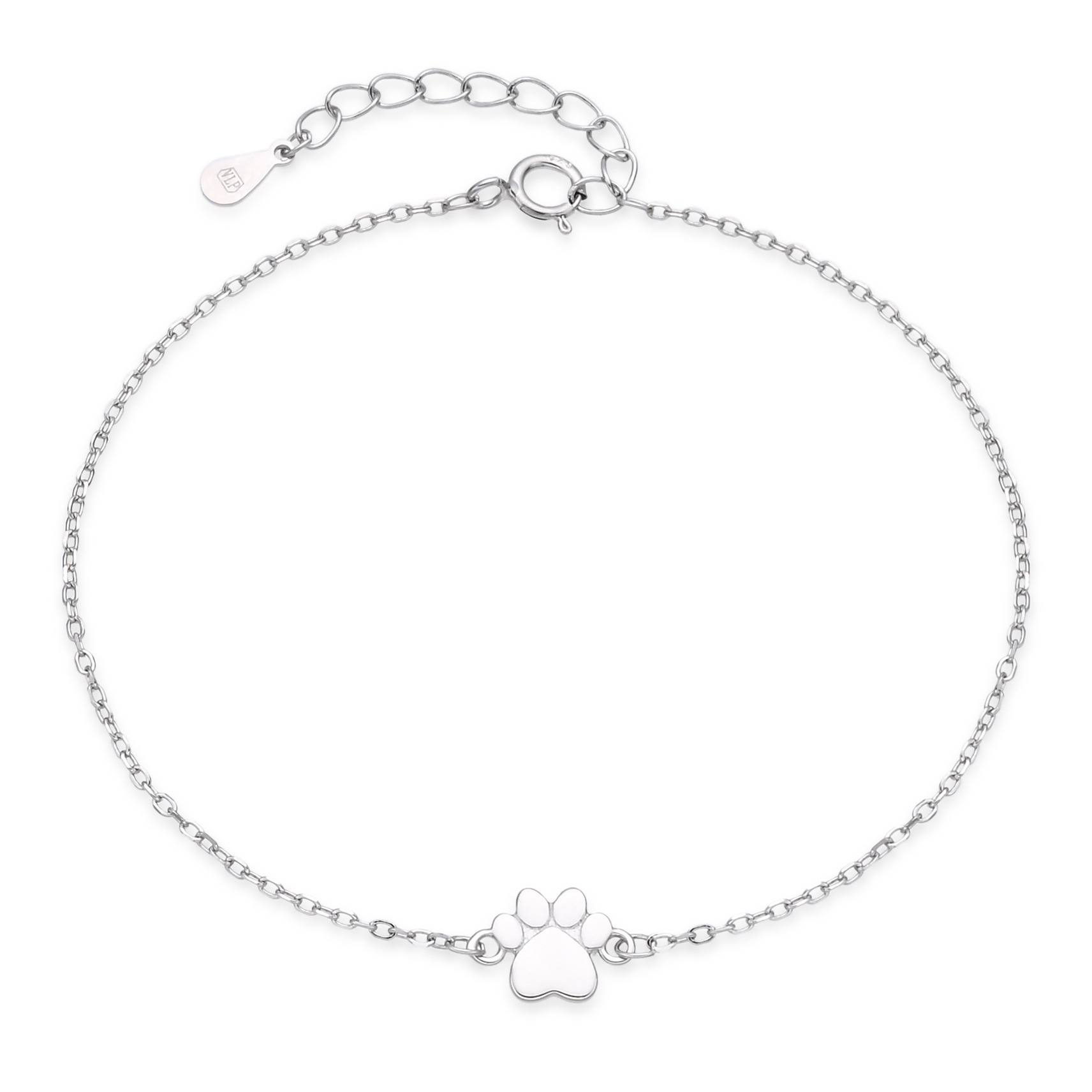 Dámský stříbrný náramek dekorovaný přívěškem ve tvaru psí tlapky