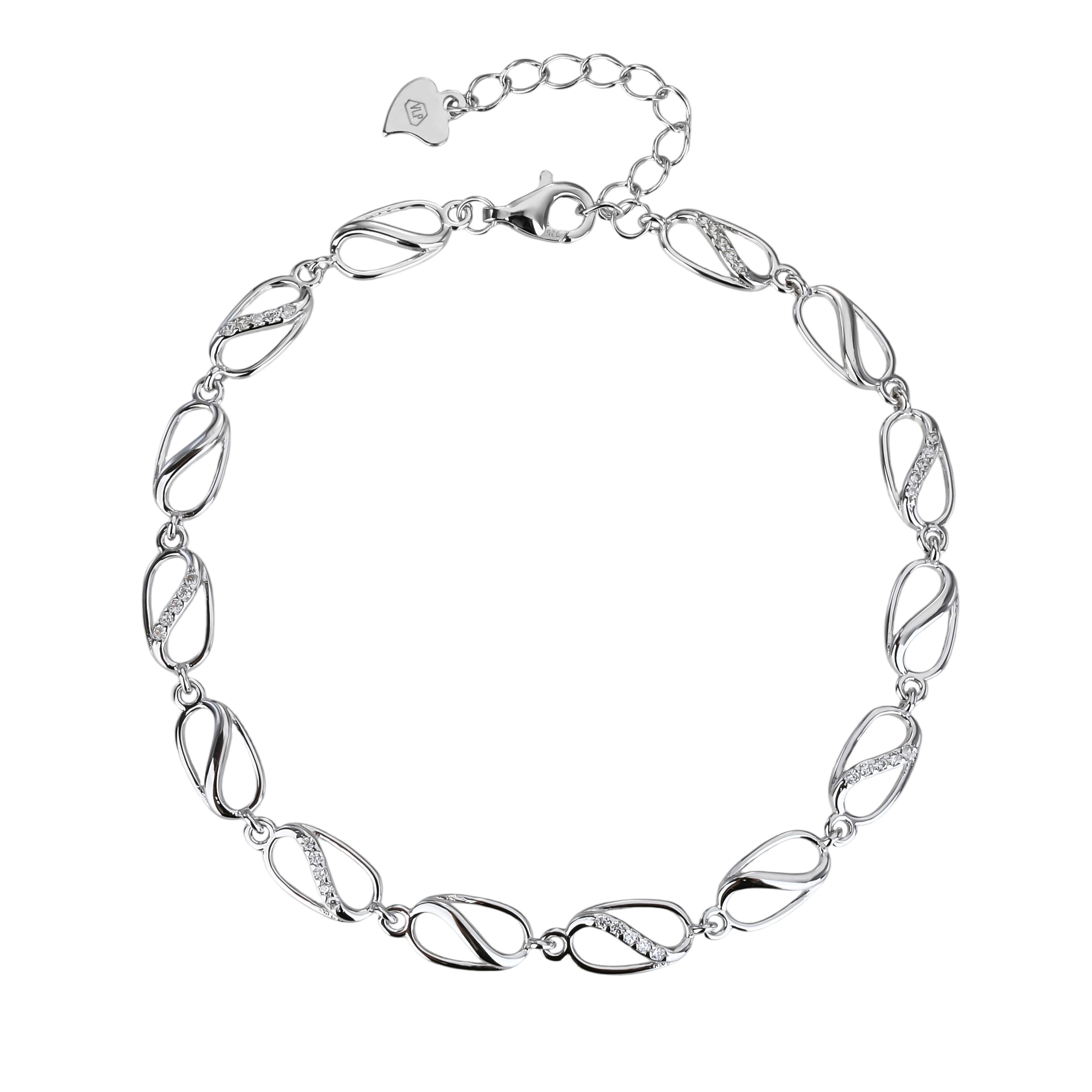 Náramek je vyroben ze stříbra s jakostním označením 925/1000 a povrchově upraven rhodiováním