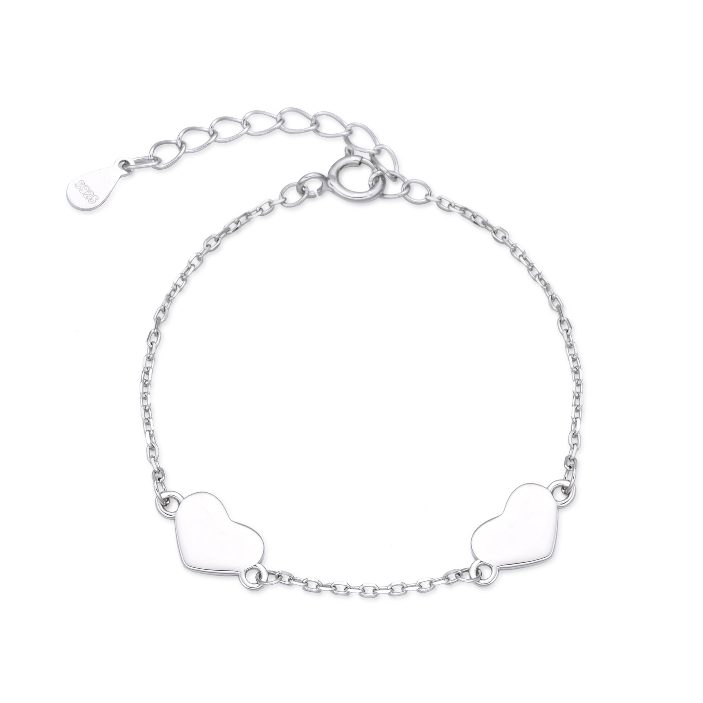 Stříbrný dětský náramek dekorovaný dvěma srdíčky