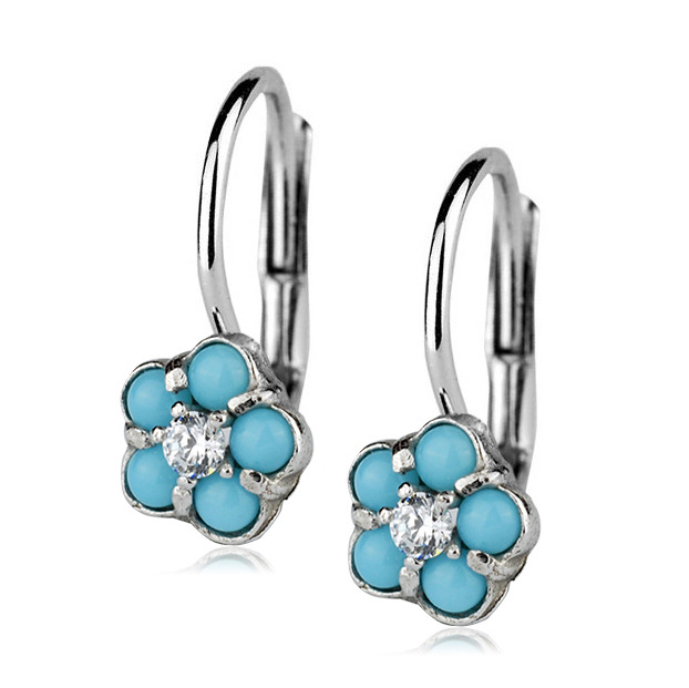 Dívčí stříbrné náušnice - kytičky tyrkysové