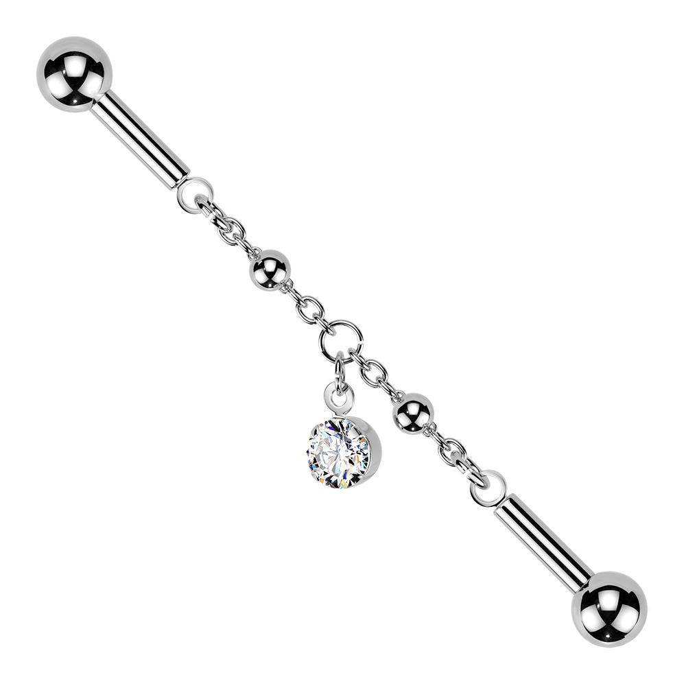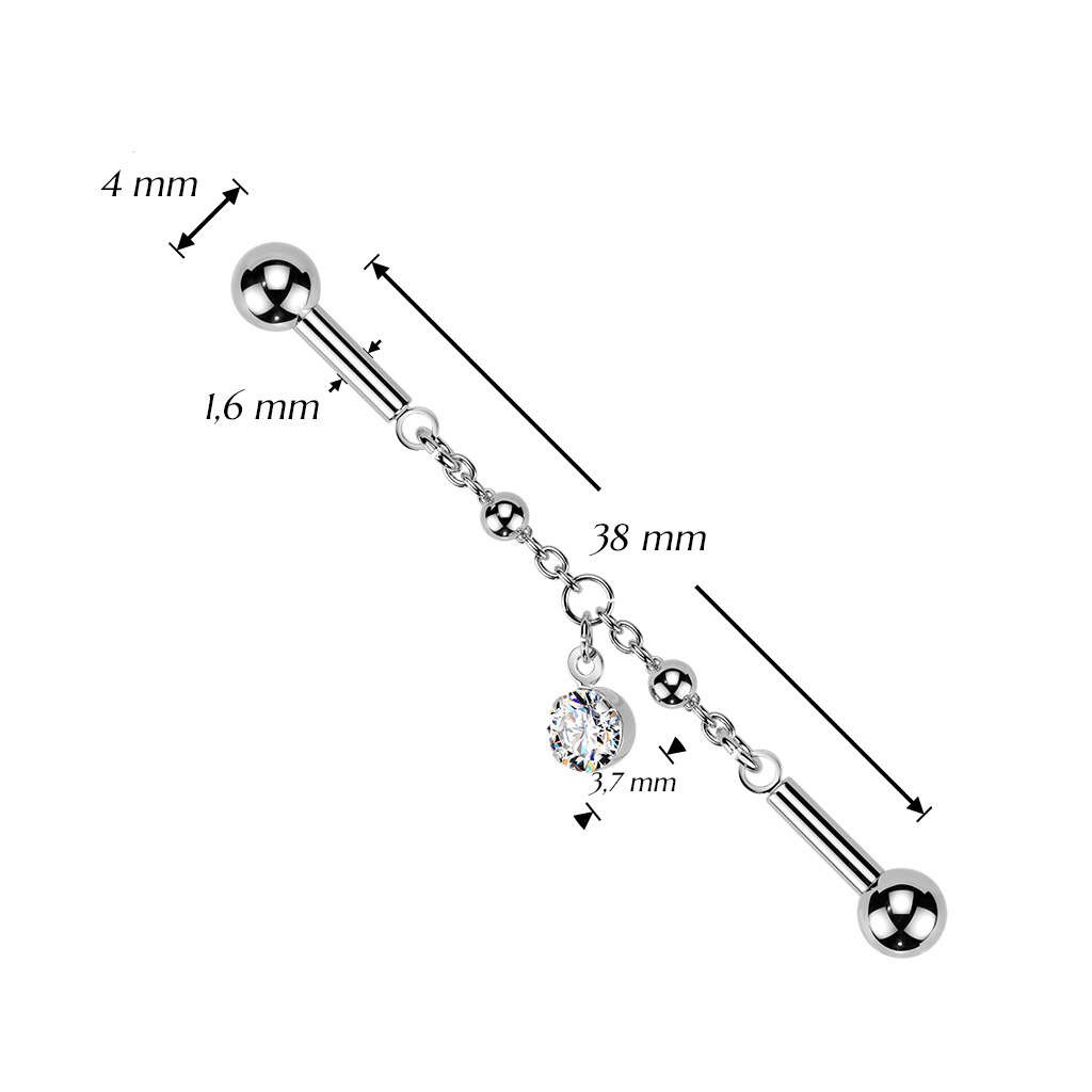 Industrial piercing zdobený zirkony čiré barvy