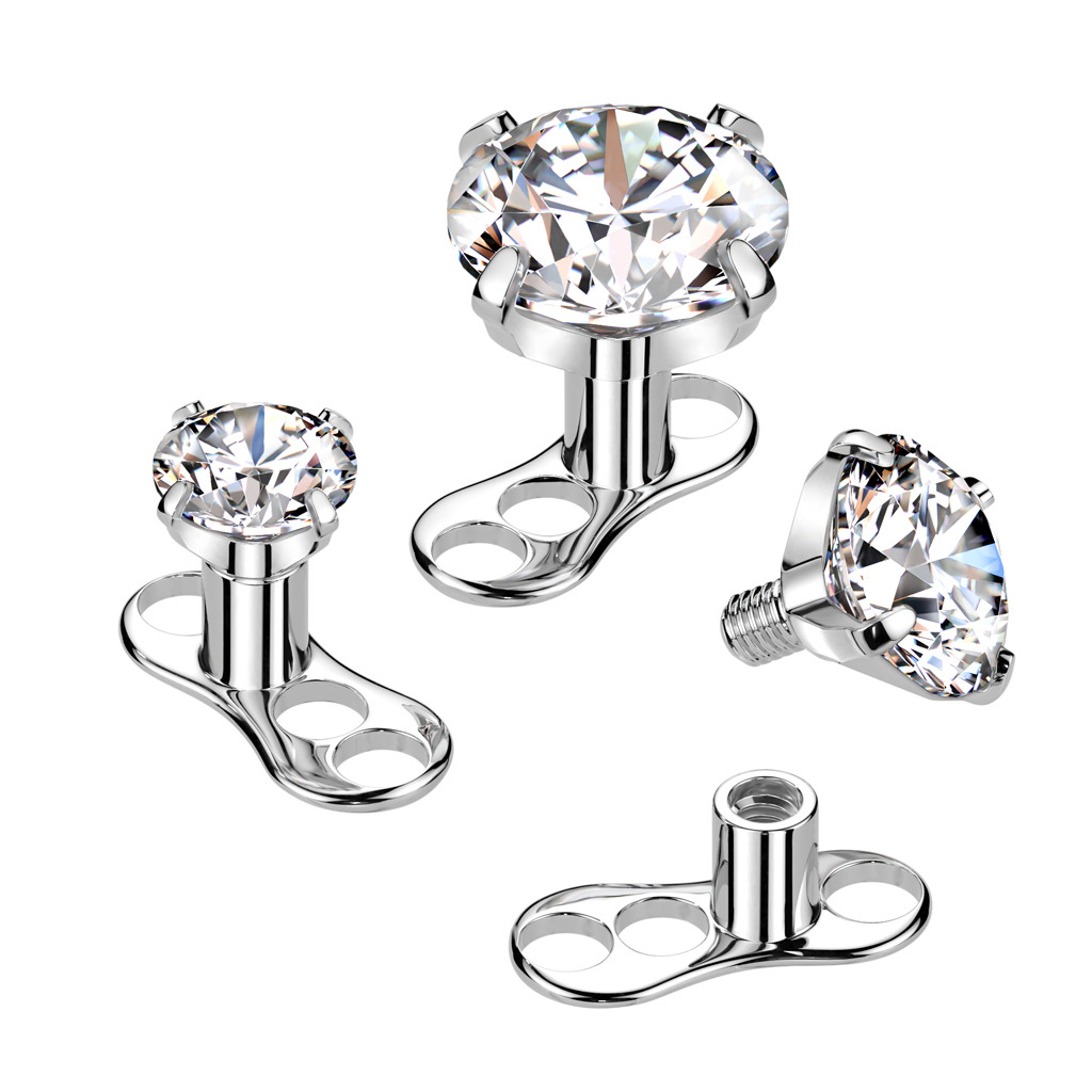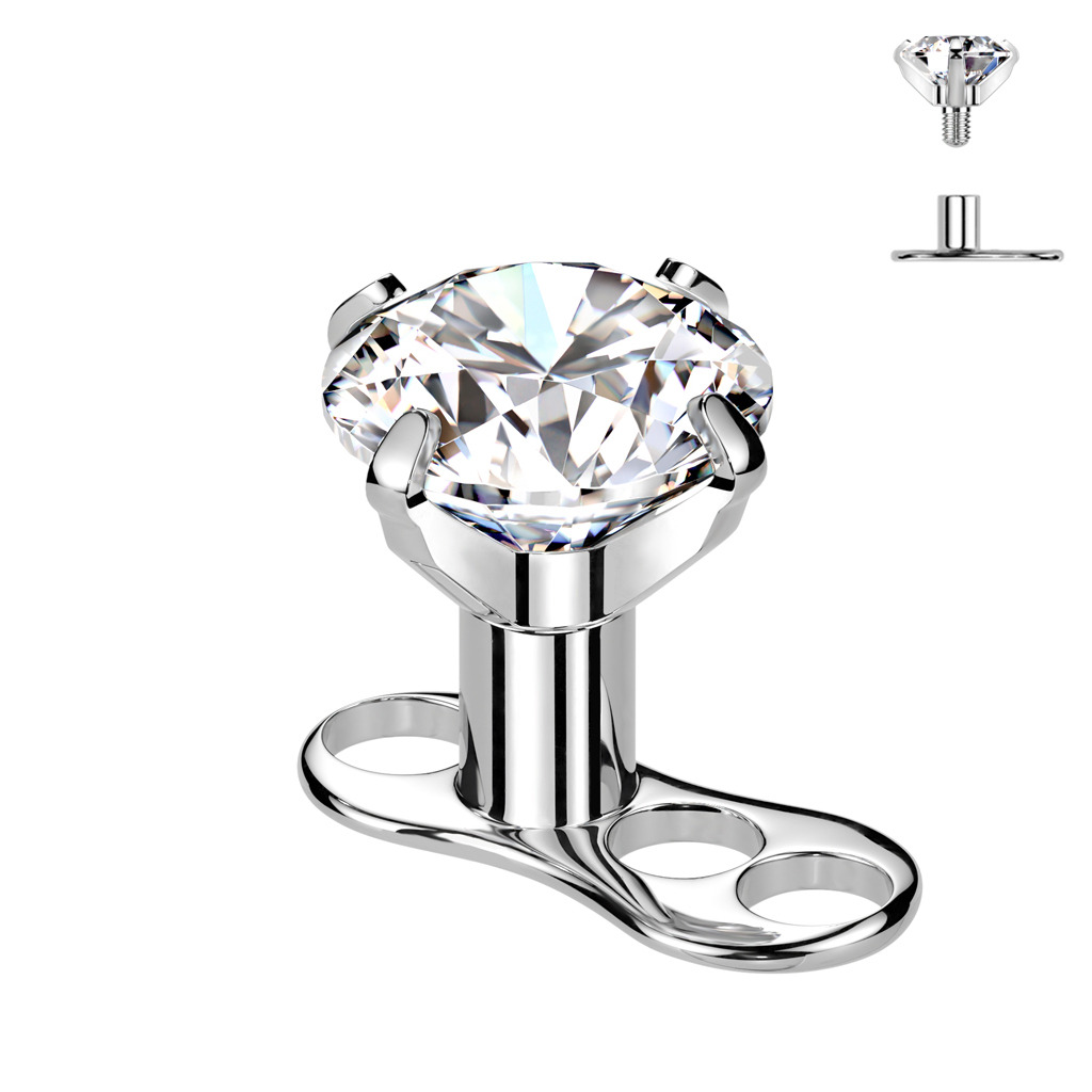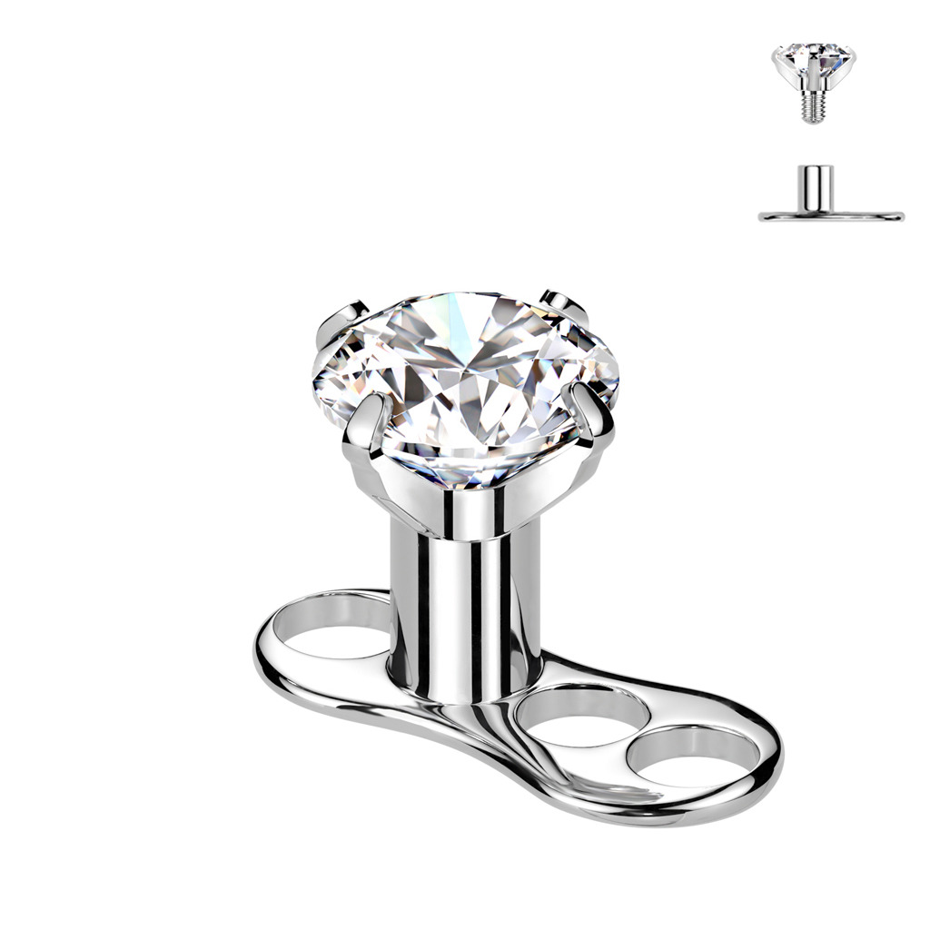 Kompletní microdermal piercing 1,2 mm - čirý zirkon