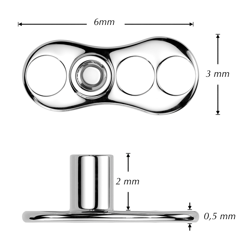 Oba díly dermálu jsou vyrobeny z titania G23 (Ti-6AL4V-ELi ASTM F-136)