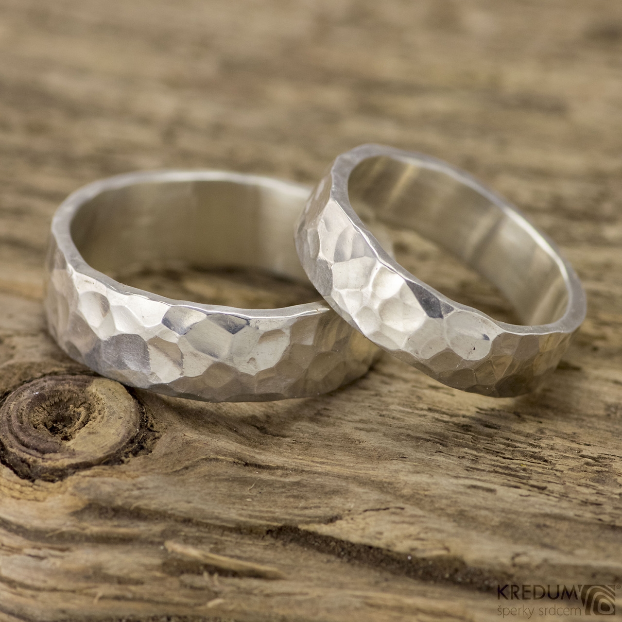 Snubní prsteny vyhotovené z ručně kovaného stříbra jakosti 925/1000