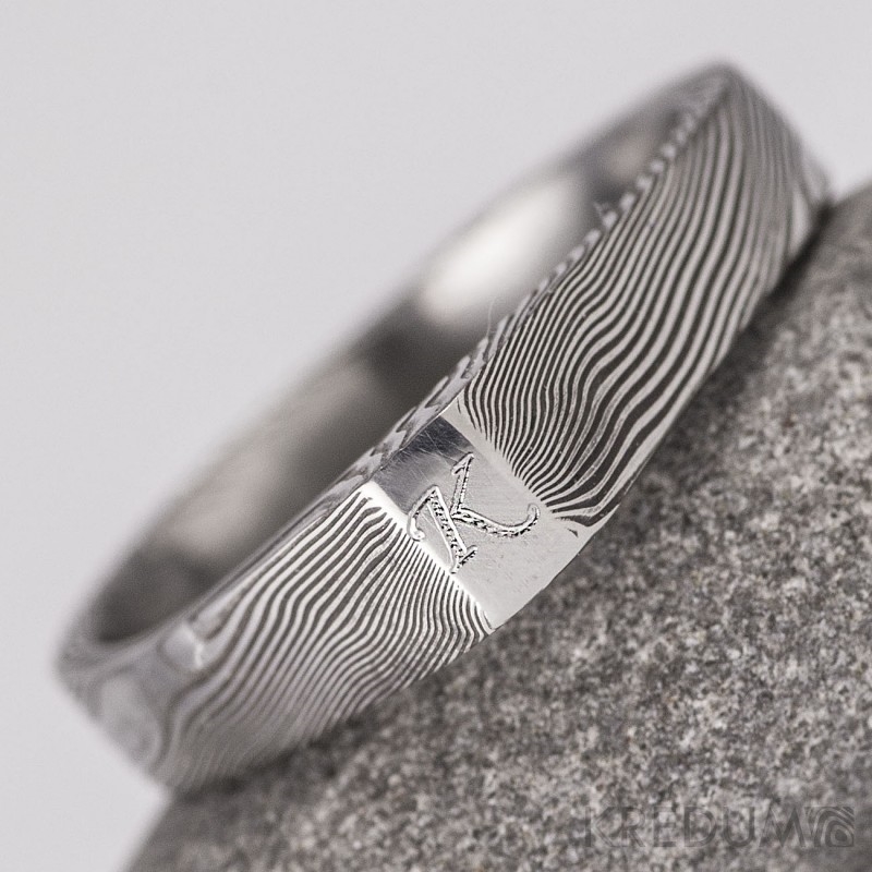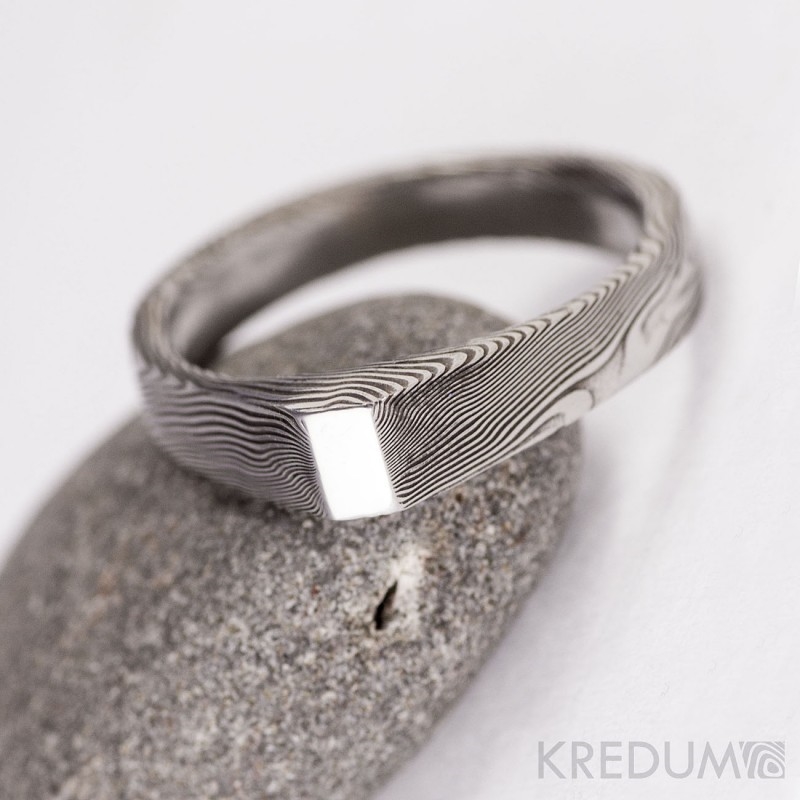 * prsten je kovaný z nerezové damascénské oceli (damasteel). Nealergický, odolný, originální.