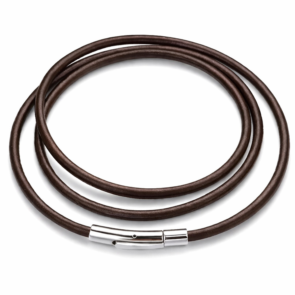 Hnědá kožená šňůrka na krk - náhrdelník s ocelovým uzávěrem
