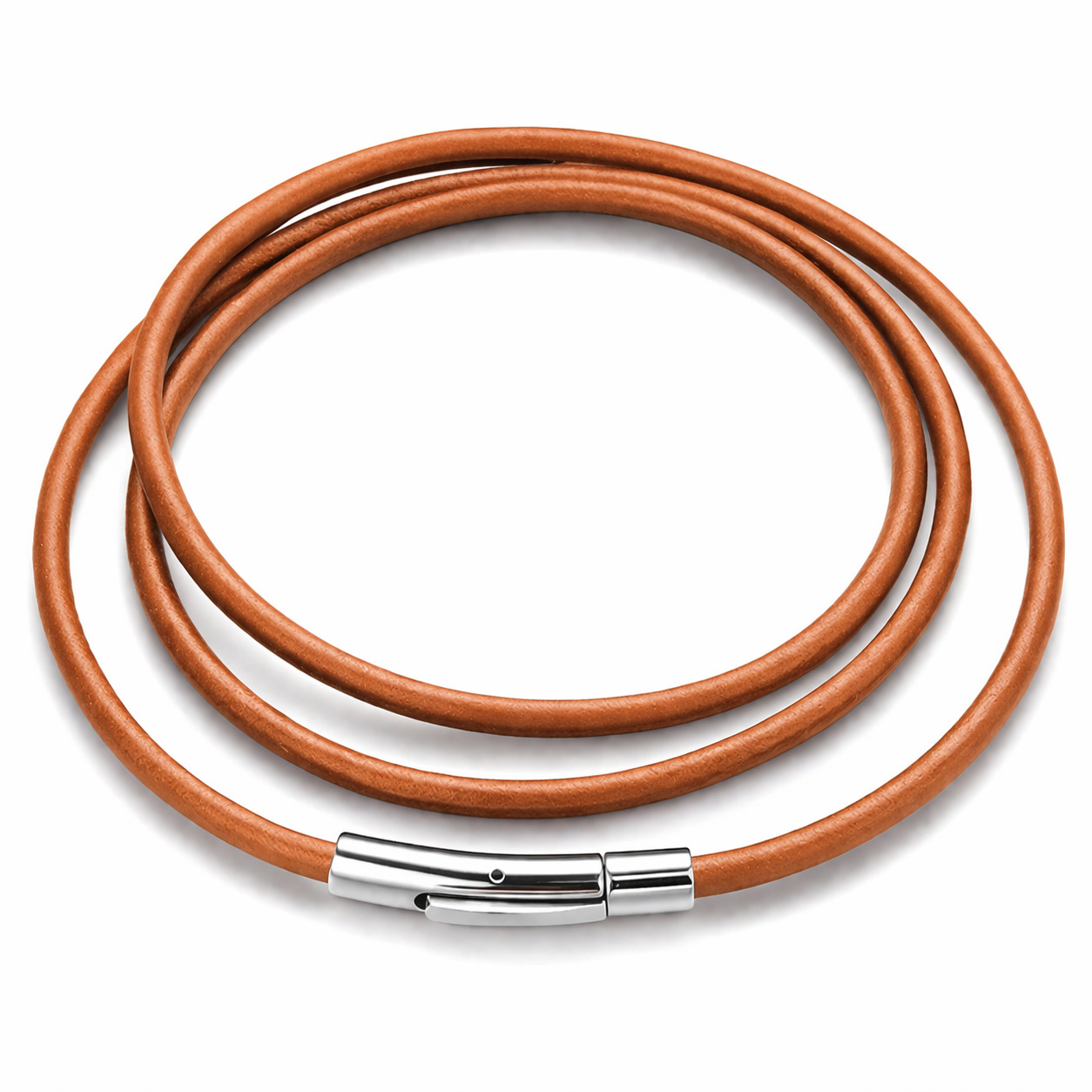 Kožený náhrdelník přírodní kůže - ocelový uzávěr, tl. 3 mm, délka 60 cm