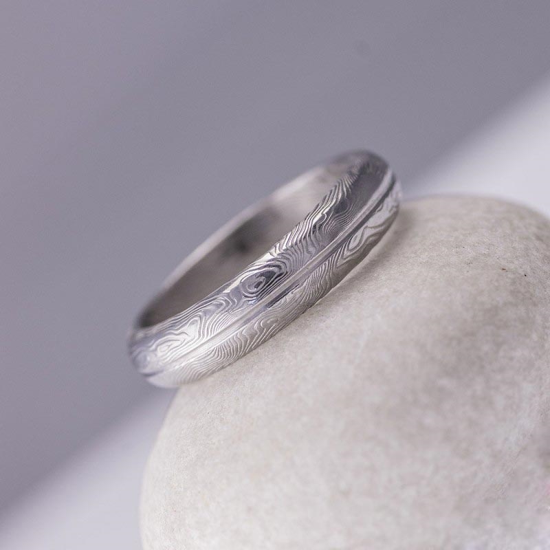 V prstenu je vybroušen podélný žlábek, který zvýrazňuje neopakovatelnou kresbu každého prstenu.
