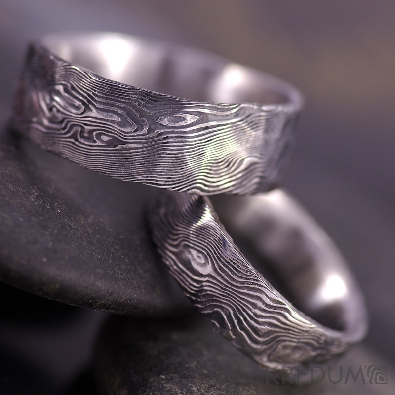 Snubní prsten nerezová ocel damasteel - Natura