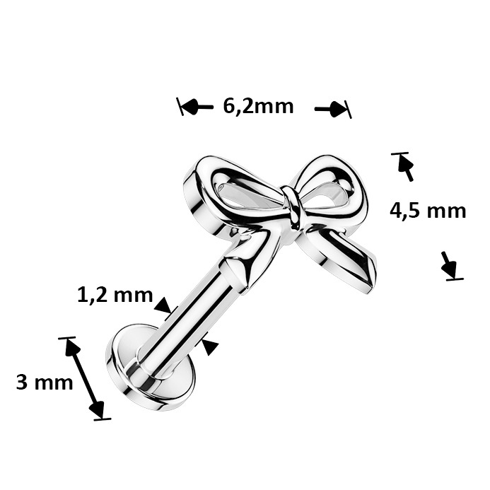 Labreta je vyrobena z chirurgické oceli 316L a ozdobná část je z obecného kovu se rhodiovanou povrchovou úpravou