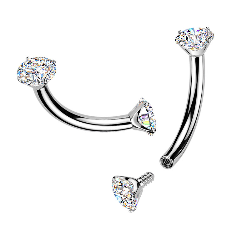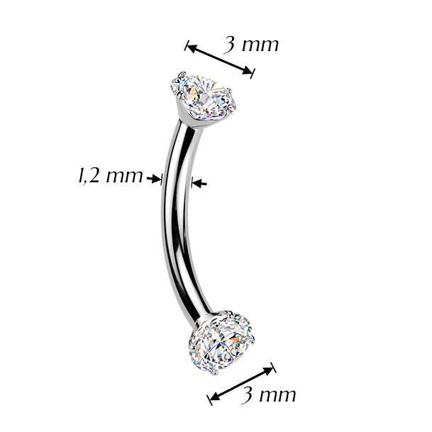 Piercing do obočí je opatřen vnitřním závitem o rozměru 1,2 mm a kameny Moissanit o hmotnosti 0,11 karátů (3mm)