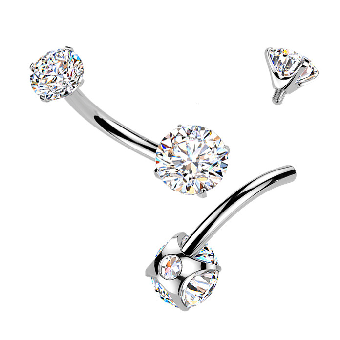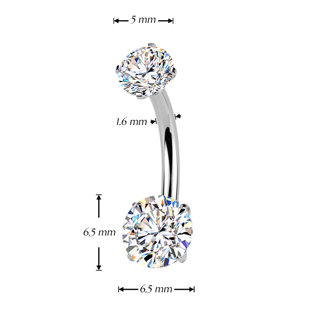 Piercing do pupíku je opatřen vnitřním závitem o rozměru 1,6 mm a kameny Moissanit o hmotnosti 1.5 karátů (0.5ct + 1ct)