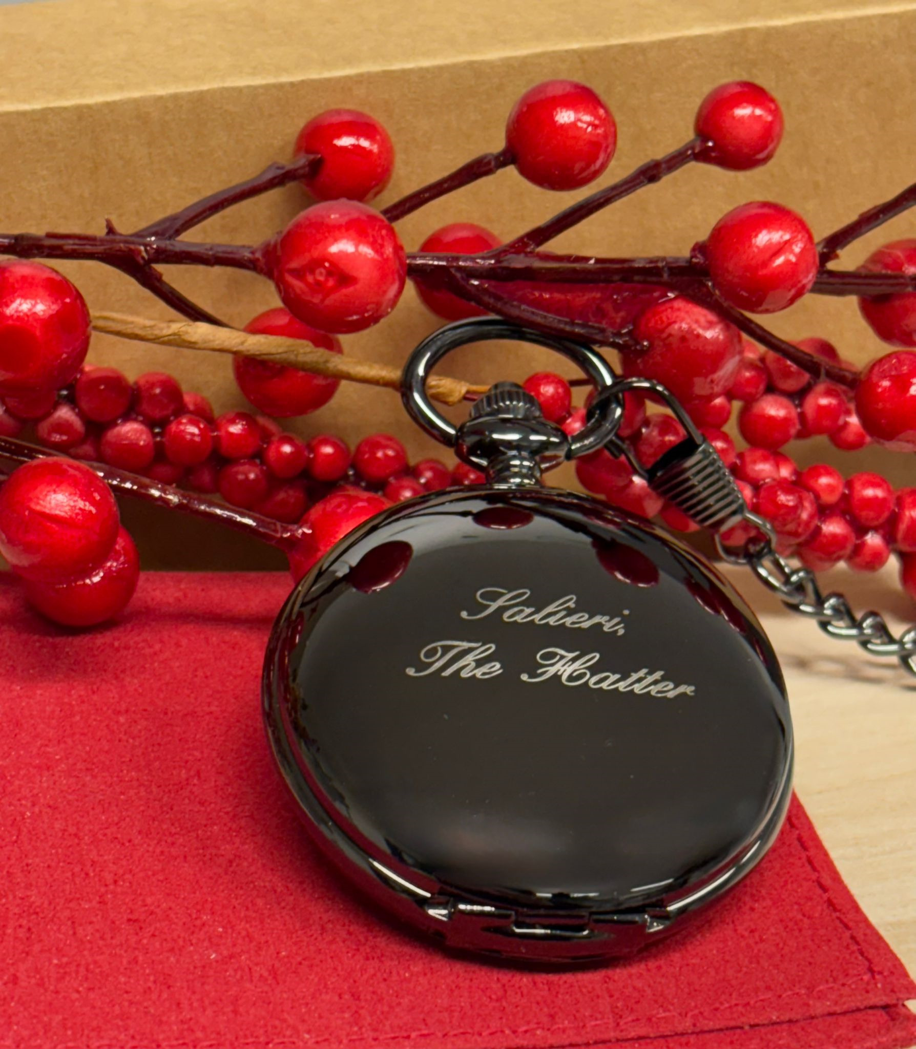 Natahovací kapesní otevírací hodinky z kovu s černou povrchovou úpravou