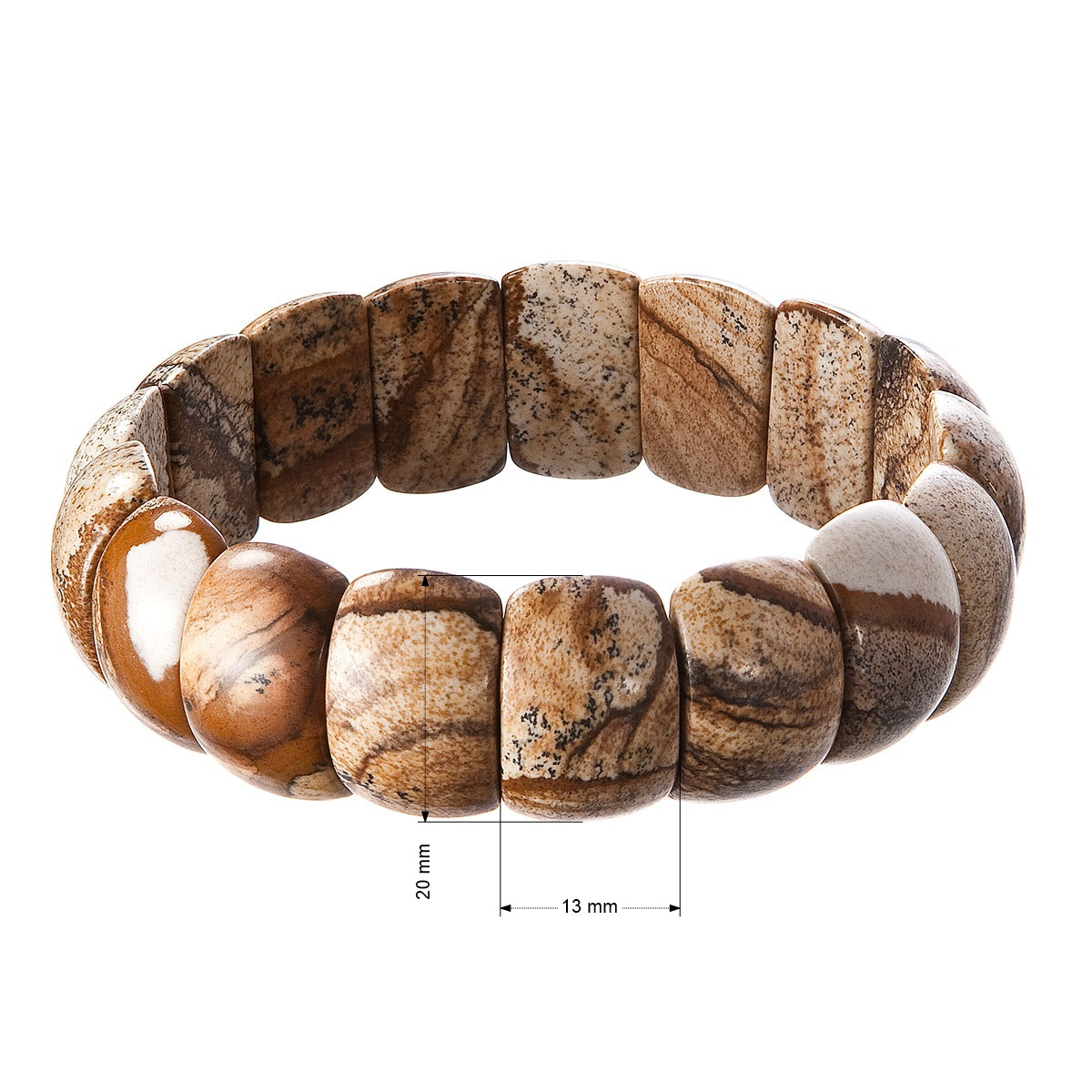 Objevte krásu přírody s tímto jedinečným masivním náramkem z pravého jaspisu, který se pyšní rozmanitými přírodními odstíny a jemnými kresbami, které vyprávějí příběh Země. Jaspis je minerál známý především svou schopností poskytovat stabilitu a podporu v náročných životních situacích. Jeho hlavní předností je dodávání životní síly a energie, díky čemuž si vysloužil přezdívku „živitel“. Elastické provedení zajišťuje snadné nošení a pohodlné přizpůsobení zápěstí.