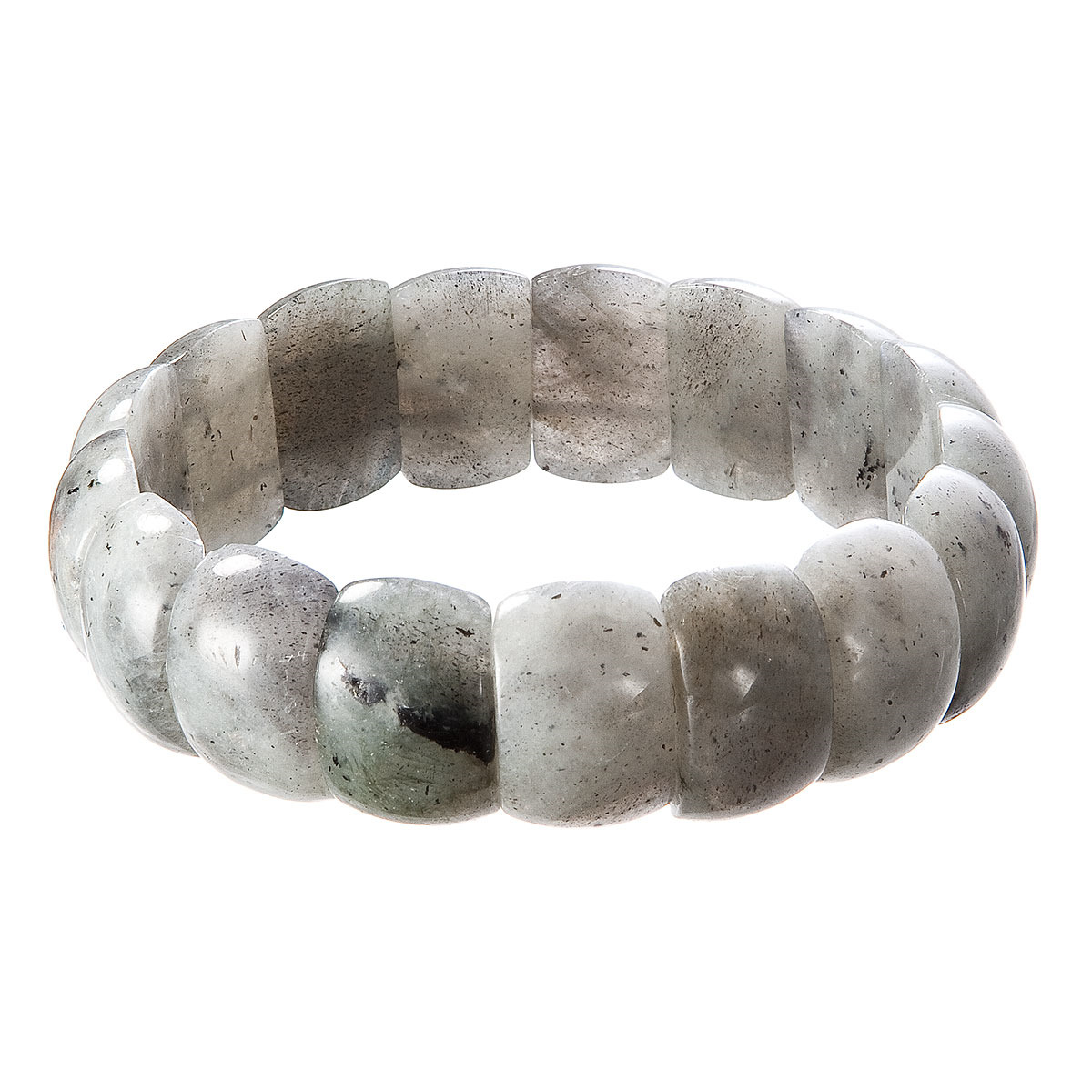 Objevte kouzlo přírody s tímto masivním náramkem z labradoritu, který okouzlí svými jedinečnými odlesky a tajemnou krásou. Každý oválný kámen hraje fascinujícími tóny šedé, modré a zelené, které se mění podle dopadu světla. Náramek je pružný díky elastické gumičce, takže se pohodlně přizpůsobí vašemu zápěstí. Nádherný kámen s magickou hrou světla, který v sobě ukrývá celou duhu barev. Labradorit je ceněn pro svou schopnost harmonizovat tělo i duši. Pomáhá při stavech