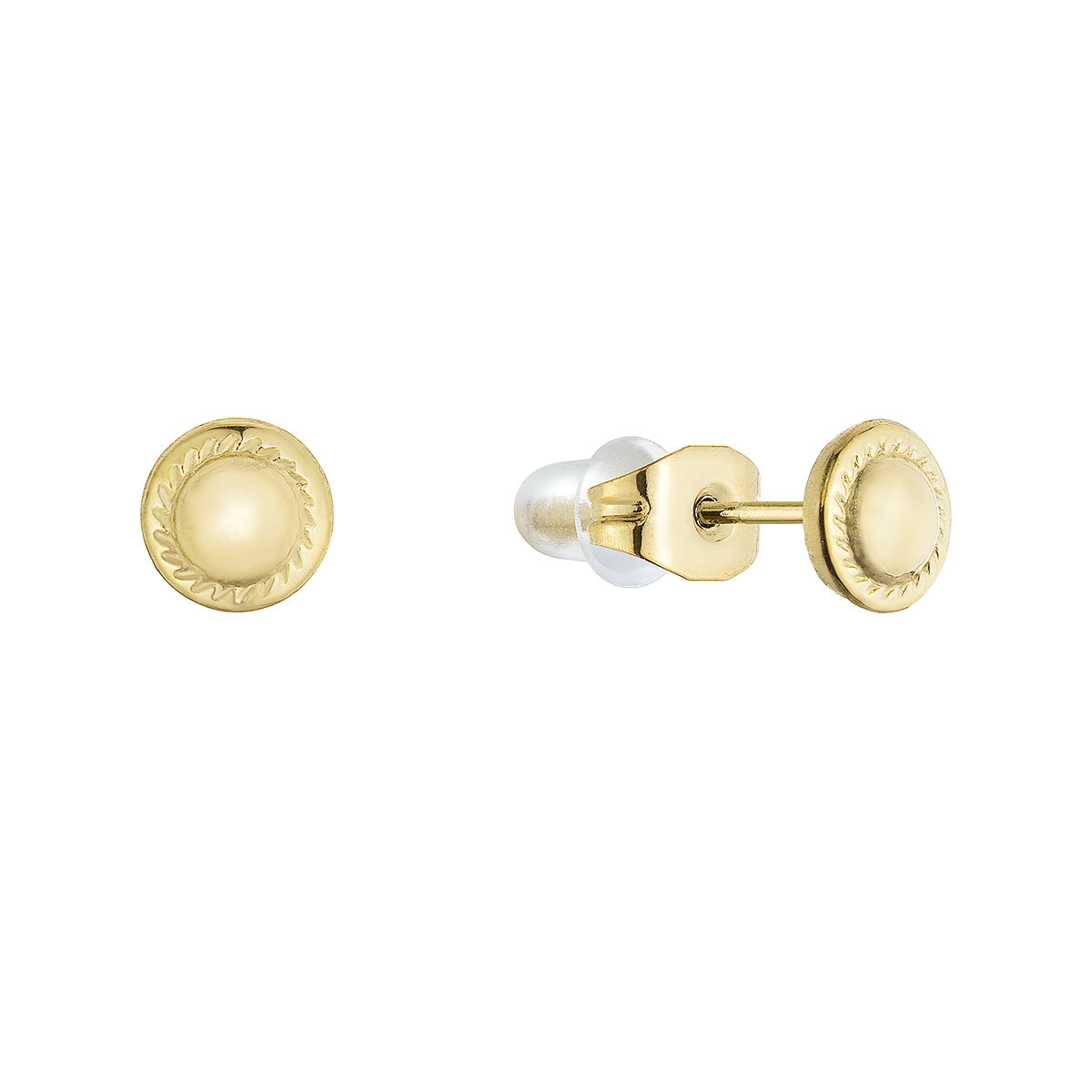 Jednoduché a stylové zlacené ocelové náušnice v podobě koleček s ozdobnými okraji