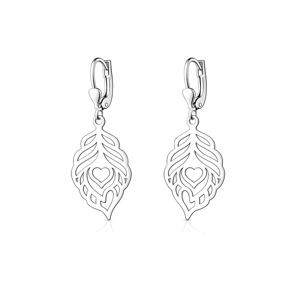 Jemné stříbrné náušnice ve tvaru stylizovaného pavího pera zaujmou svou lehkostí.