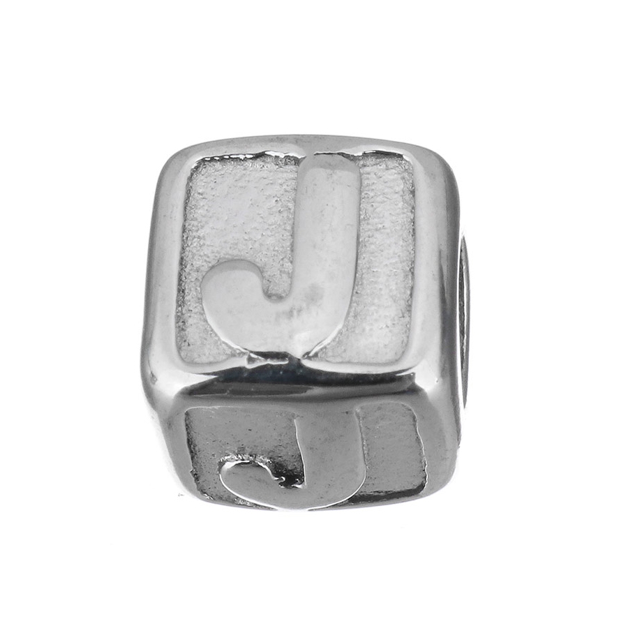 Ocelový korálek kostka s písmenem "J"