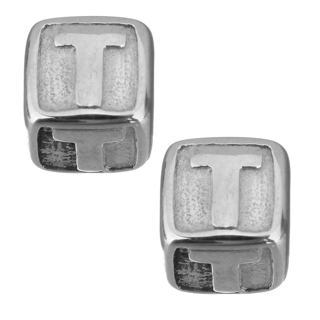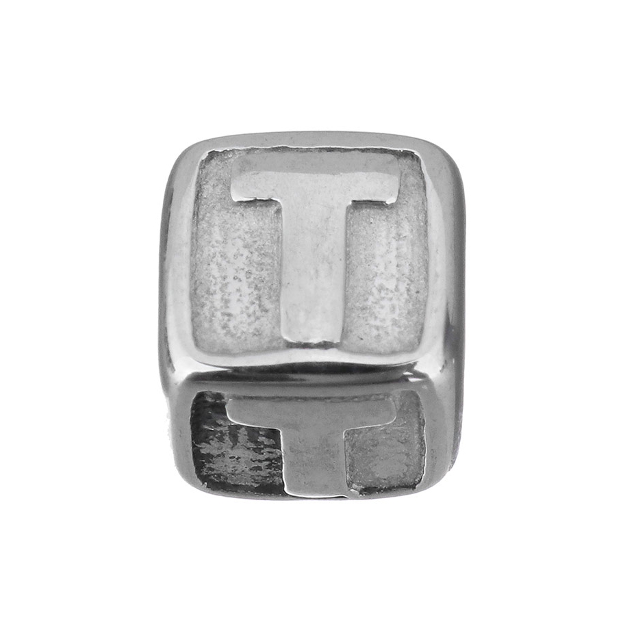 Navlékací ocelový přívěšek korálek - písmeno "T"