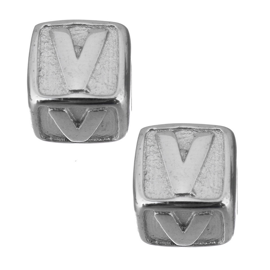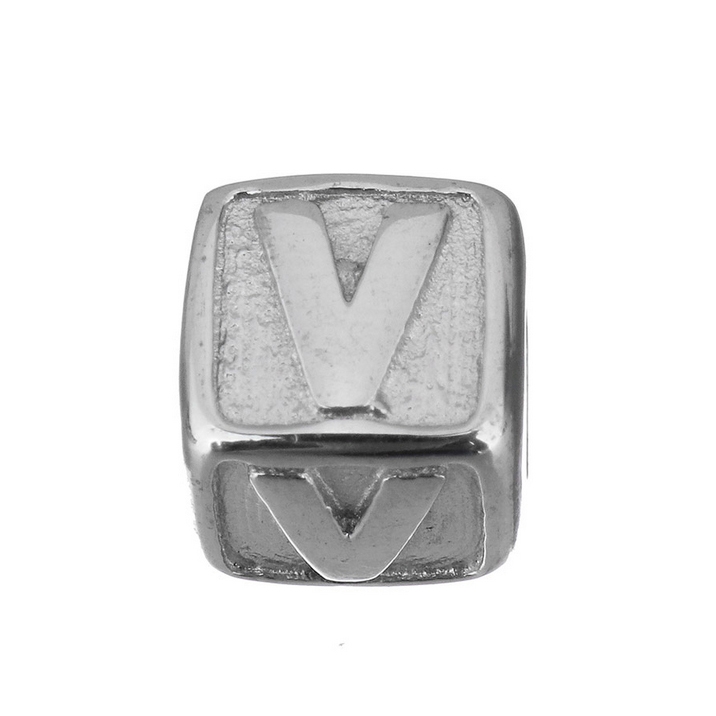Navlékací ocelový přívěšek korálek - písmeno "V"