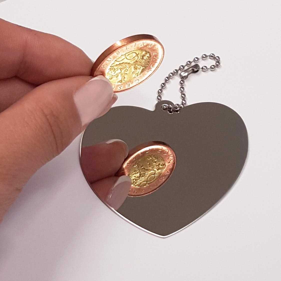 Ocelové kapesní zrcátko ve tvaru srdce