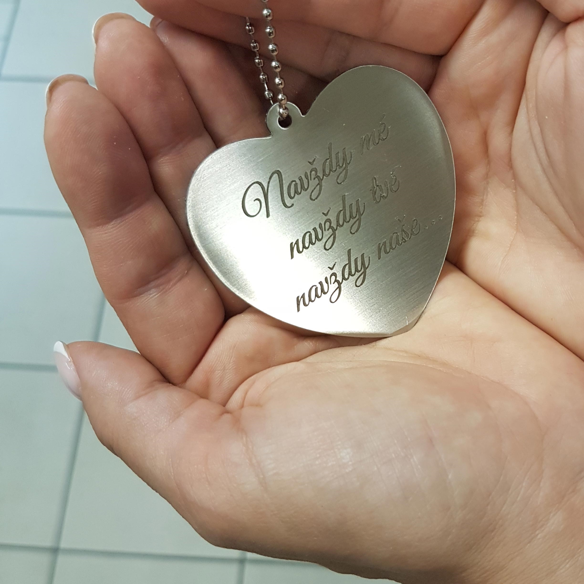 Na zadní stranu zrcátka lze zhotovit rytinu textu. Zrcátko s rytinou pak může sloužit jako originální dárek k různým výročím, narozeninám nebo jako krásný vánoční neo valentýnský dárek