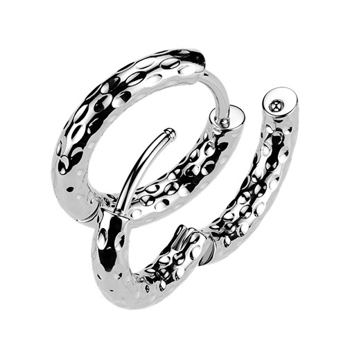Ocelové náušnice ve tvaru kruhů zdobených vymačkávaným strukturovaným dekorem