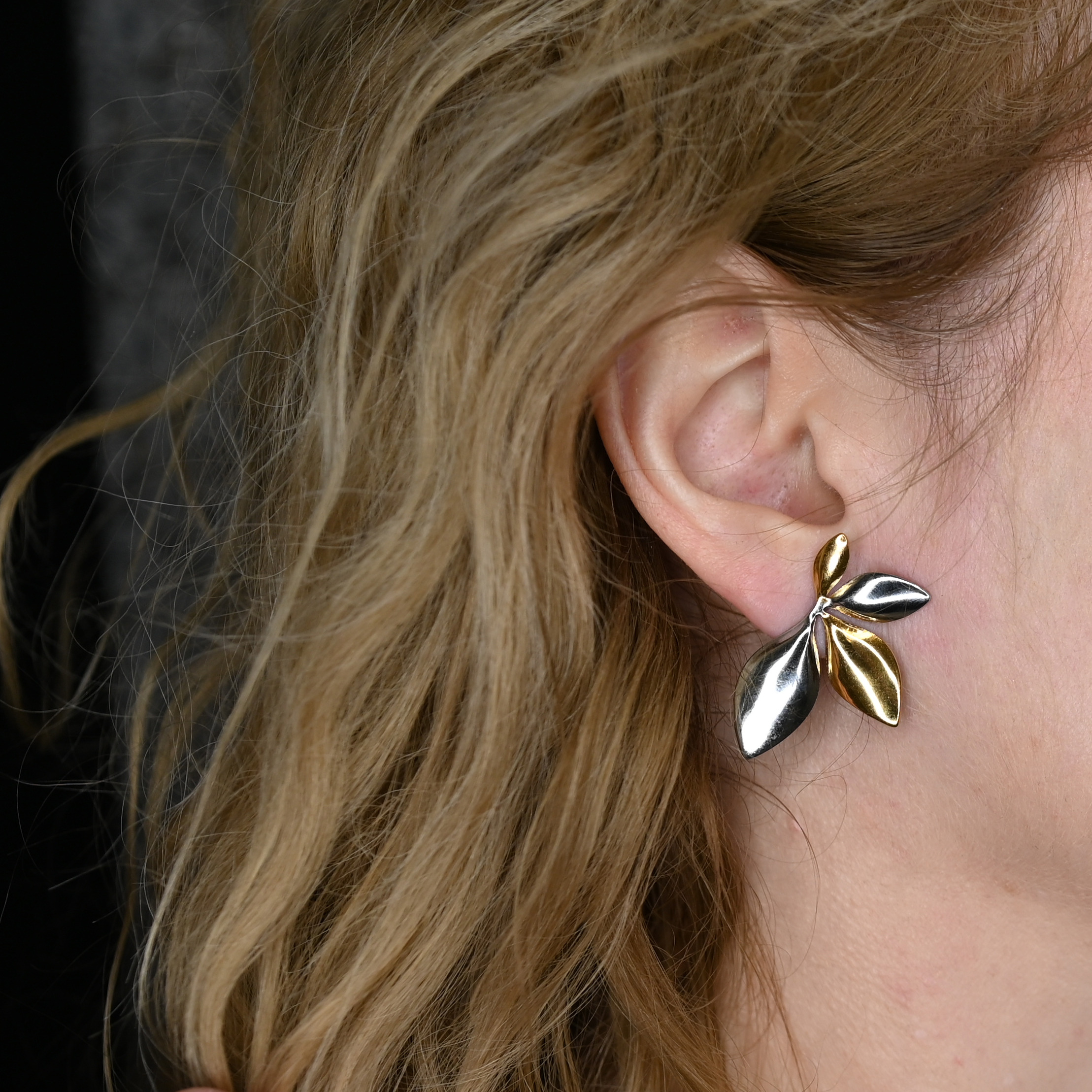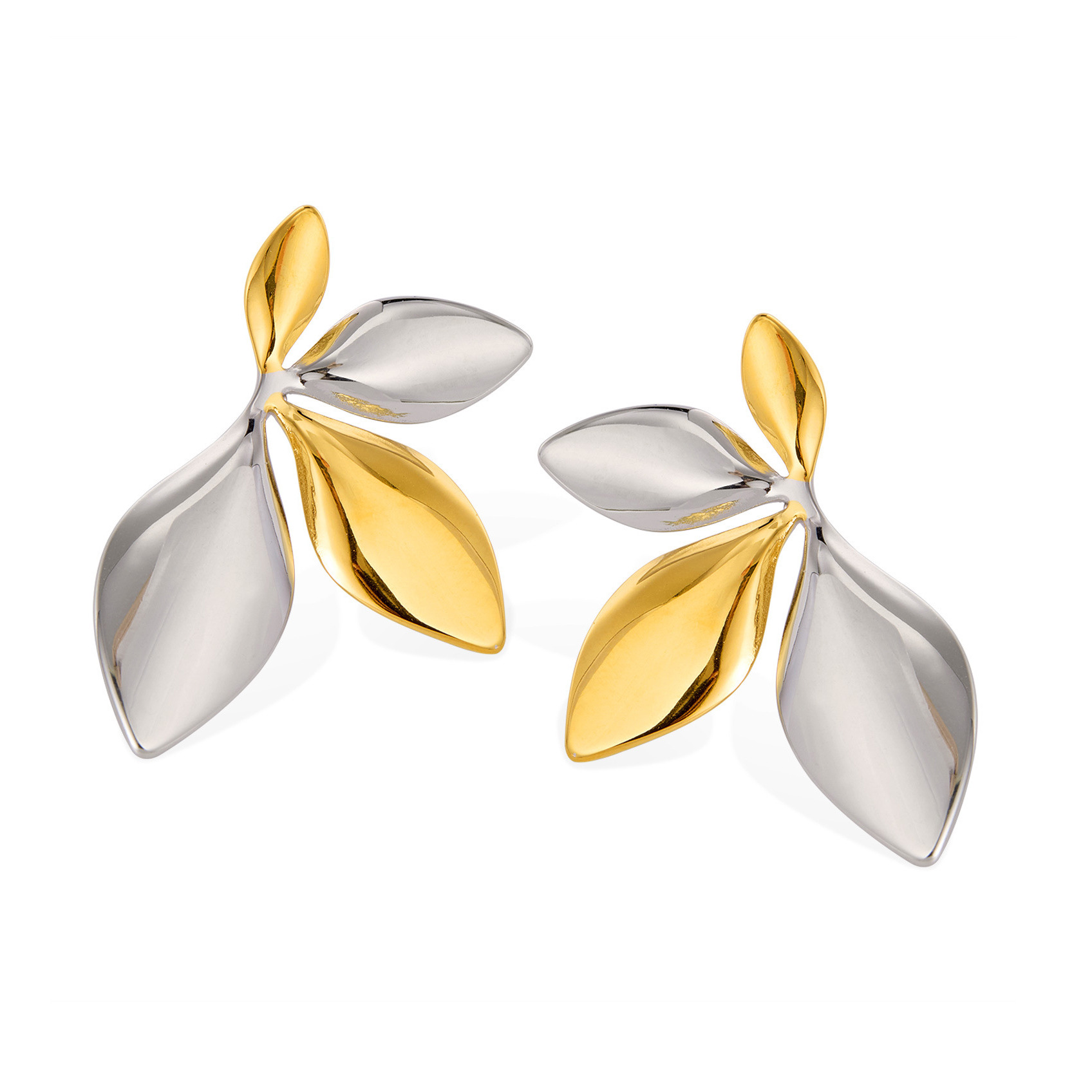 Náušnice jsou vyrobeny z nezávadné jakostní nerezové oceli a mají kombinovanou lesklou povrchovou úpravu a úpravu v barvě žlutého zlata