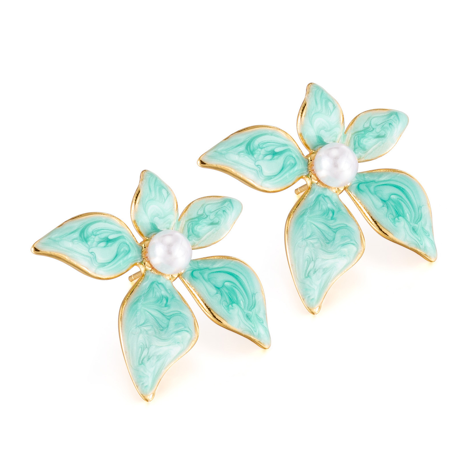 Zlacené ocelové náušnice kytičky se smaltovaným povrchem