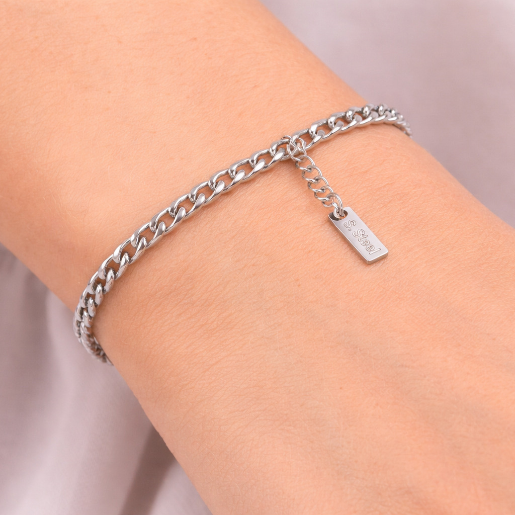 Elegantní dámský náramek z nerezové oceli zaujme svým jemným a minimalistickým designem. Tenký řetízek v lesklém provedení působí velmi decentně a snadno se kombinuje s dalšími šperky i každodenním outfitem.