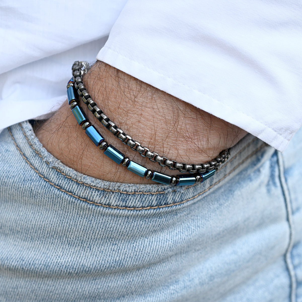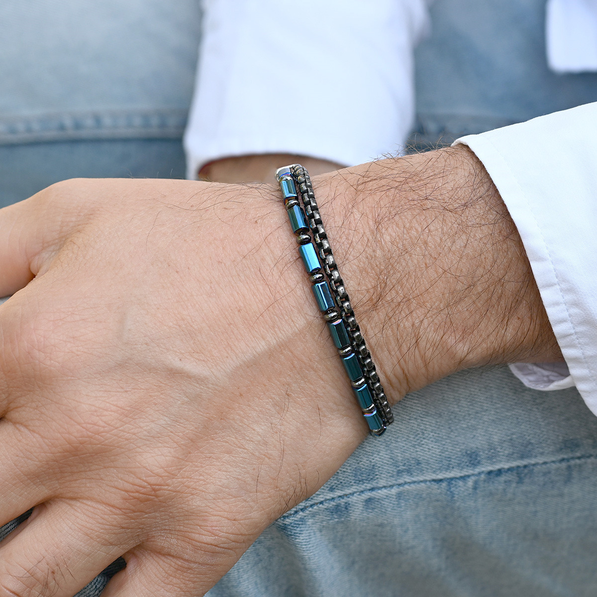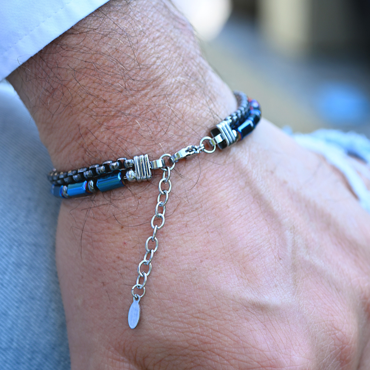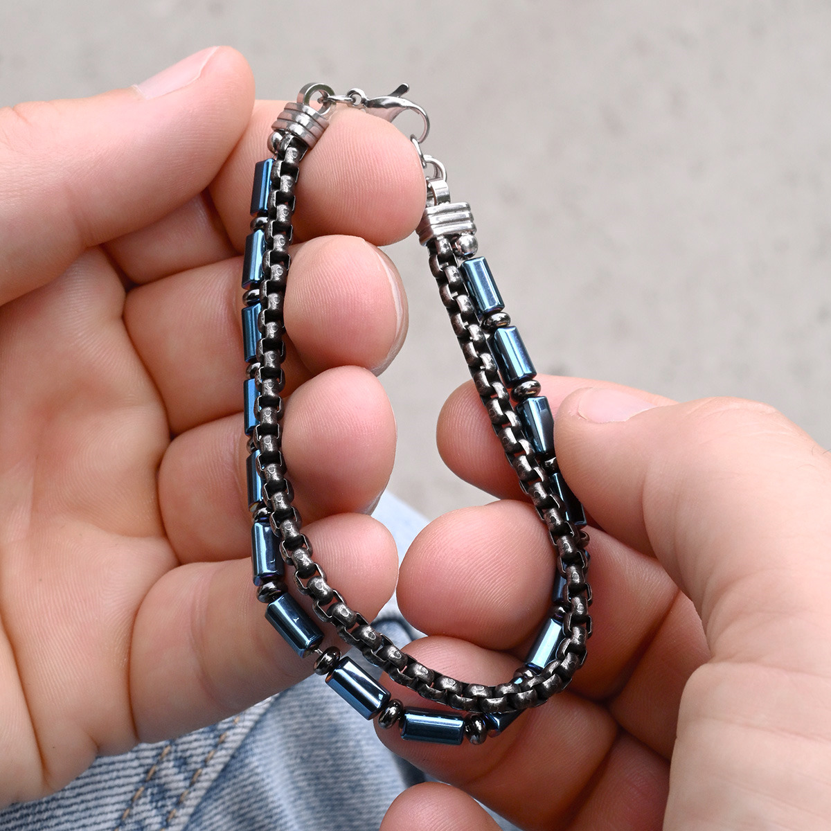 Ocelový náramek s hematitem