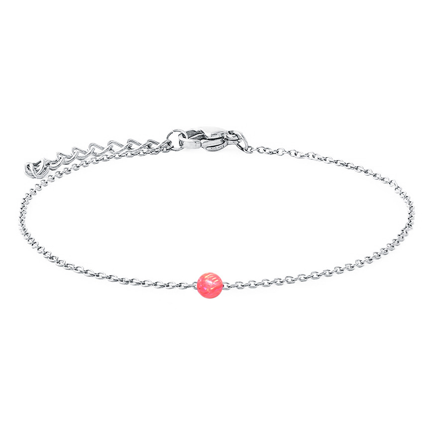 Ocelový náramek dekorovaný kuličkou ze syntetického opálu o rozměru 5 mm