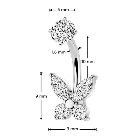Ocelový piercing do pupíku motýlek