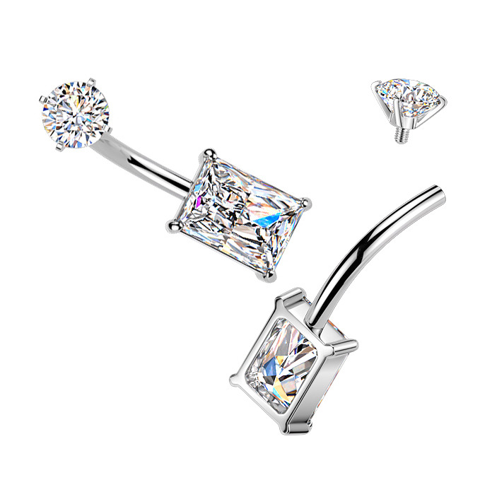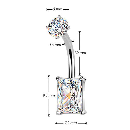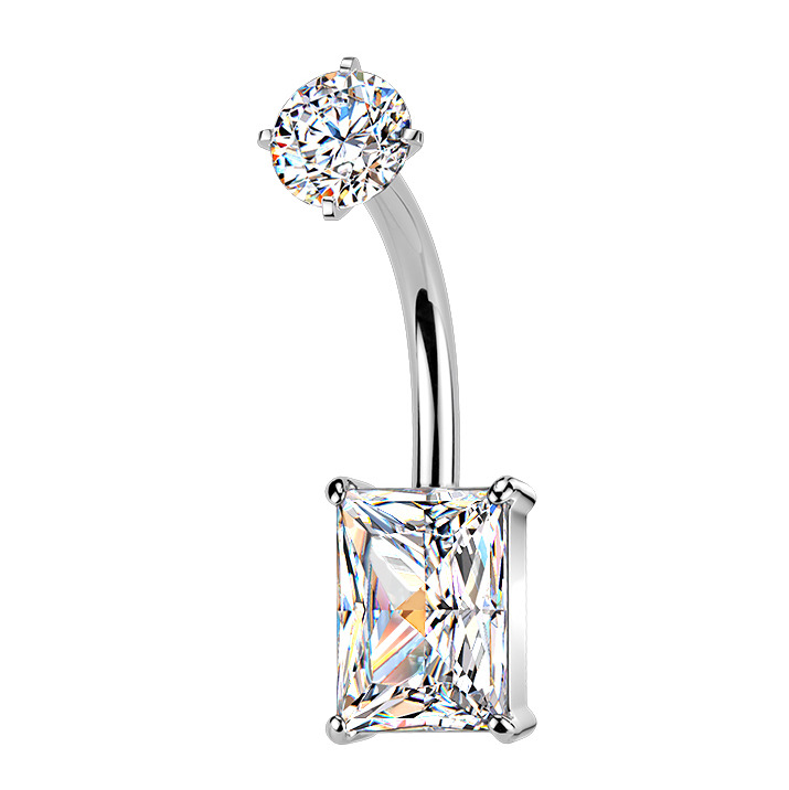 Piercing do pupíku s ozdobnou částí tvořící zirkon obdélníkového tvaru