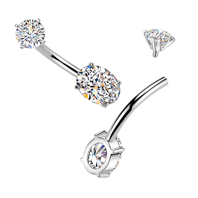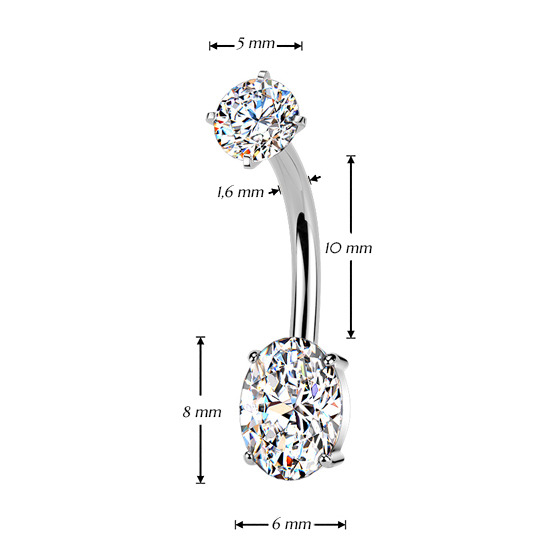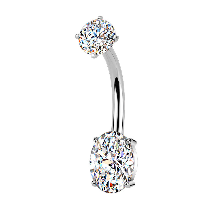 Piercing do pupíku s ozdobnou částí tvořící zirkon oválného tvaru